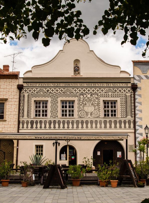 A 16. században épült, reneszánsz stílusú Sgraffitós-ház nevét a homlokzatán látható, Magyarországon különlegesnek számító sgraffitó díszítésről kapta. Az olasz eredetű szó többrétegű vakolatdíszítésre utal, amelynek lényege, hogy a homlokzatra két vakolatréteget visznek fel, majd az egyiket az előre meghatározott minta szerint eltávolítják.
