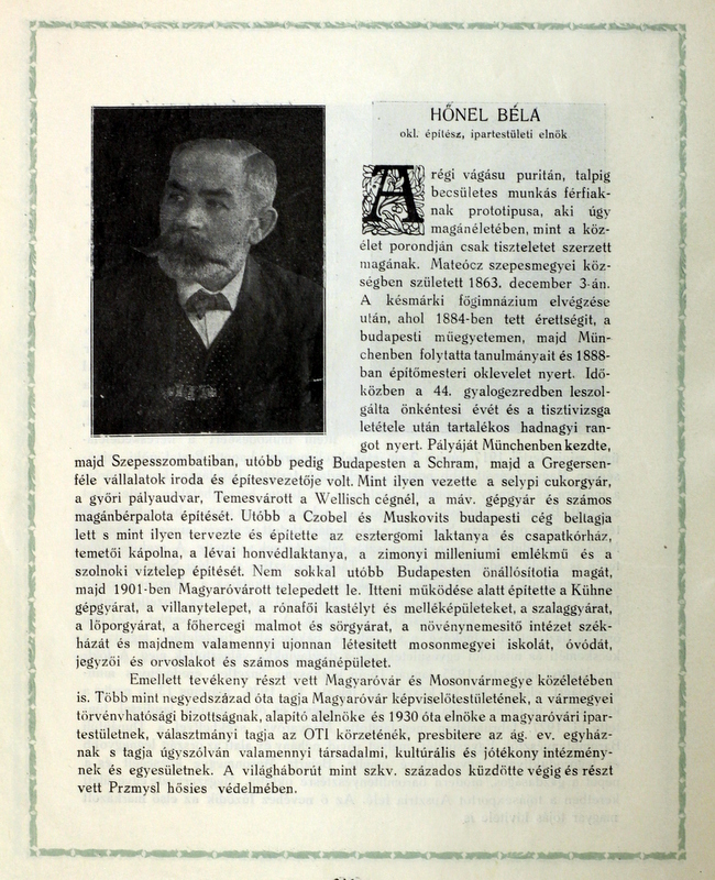 A Városkapu tér kialakításában elévülhetetlen szerepe volt Hőnel Béla magyaróvári építésznek. A tér területe a Stadtgraben nevű Lajta-ág, a középkori alsó-híd és őrháza, majd a tűzoltó szertár felszámolásával alakult ki. Hőnel a téren számos építkezést folytatott. A tér első közintézménye 1909-től kezdődően a posta volt. A Postapalota egyben Hőnel Béla lakóháza is volt, nélküle posta sem lett volna! Az épület jelenleg fel- és elhagyott, változások előtt áll.